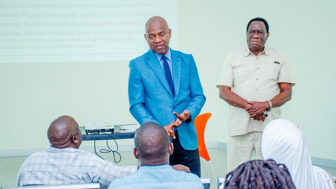 Mha. Lameck Kamando, Afisa Mkaguzi wa Reli Mwandamizi LATRA akitoa elimu kwa wafanyakazi mahususi wa reli (Safety Critic...