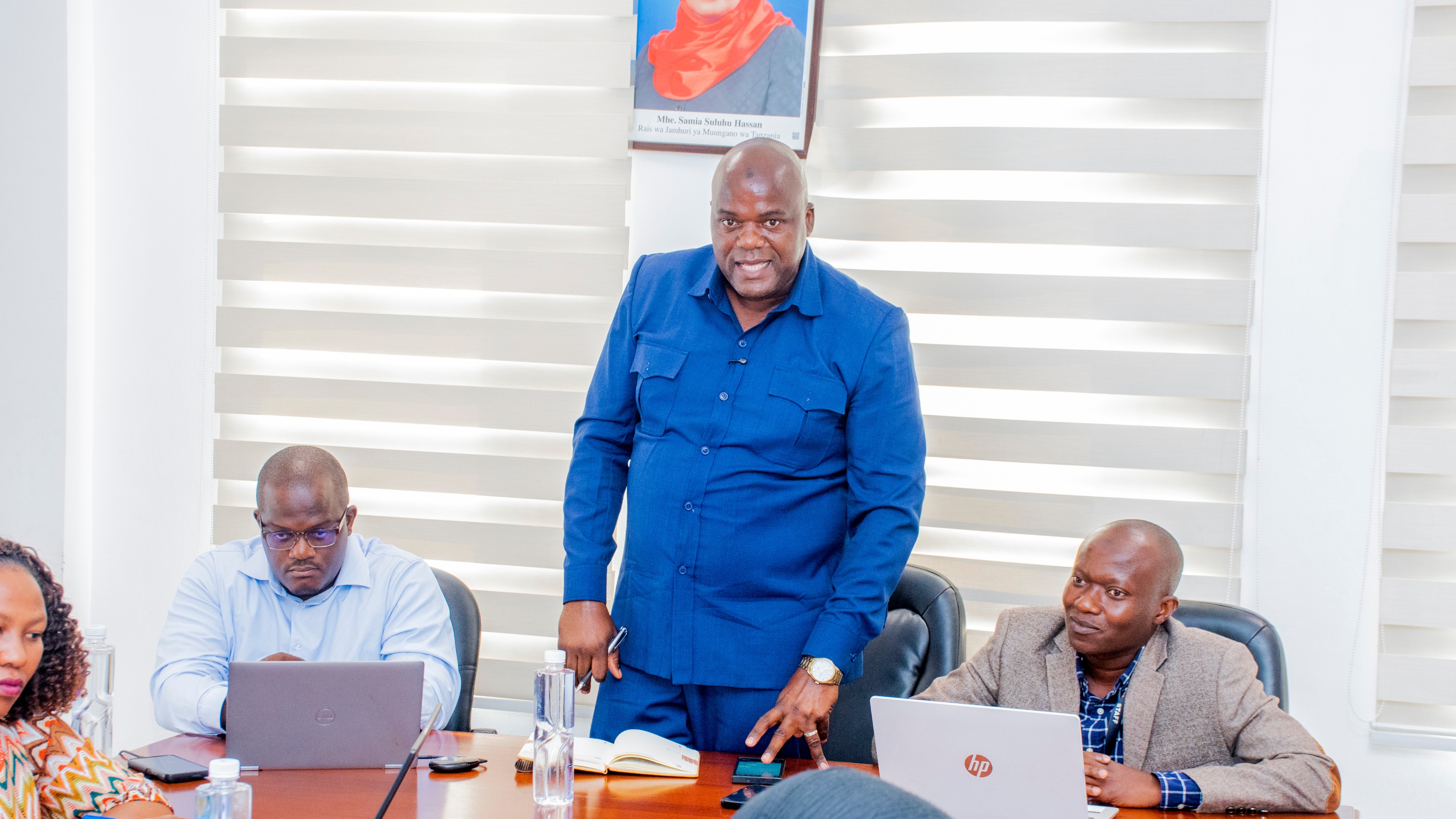 Bw. Salum Pazzy, Kaimu Mkuu wa Kitengo cha Uhusiano na Mawasiliano kutoka LATRA akimuelezea Mhe. David Kihenzile, Naibu...