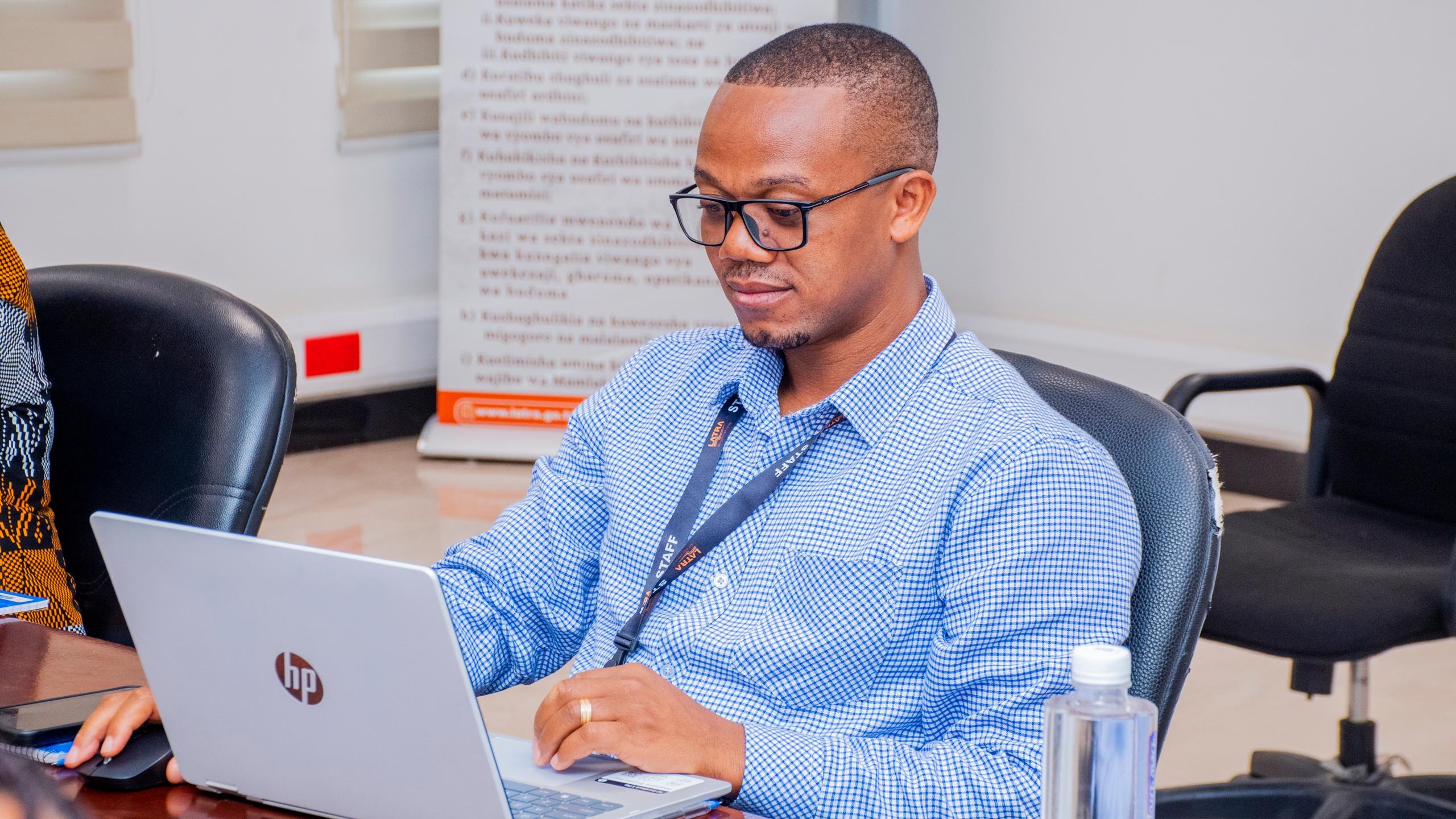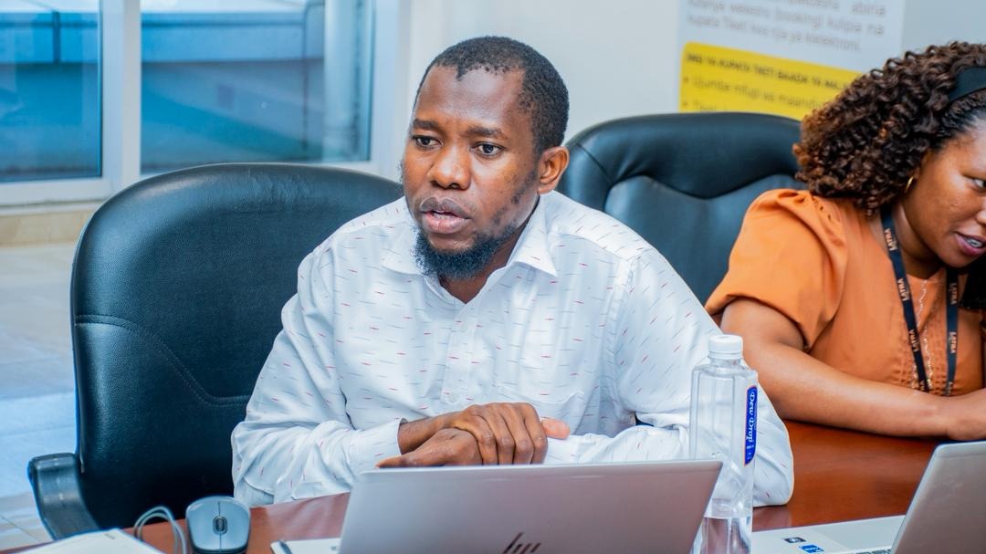 Bw. Audax Stephen, mwezeshaji wa uendelevu wa Mazingira, Jamii na Utawala (ESG) akiwapatia machampioni wa LATRA mbinu mb...